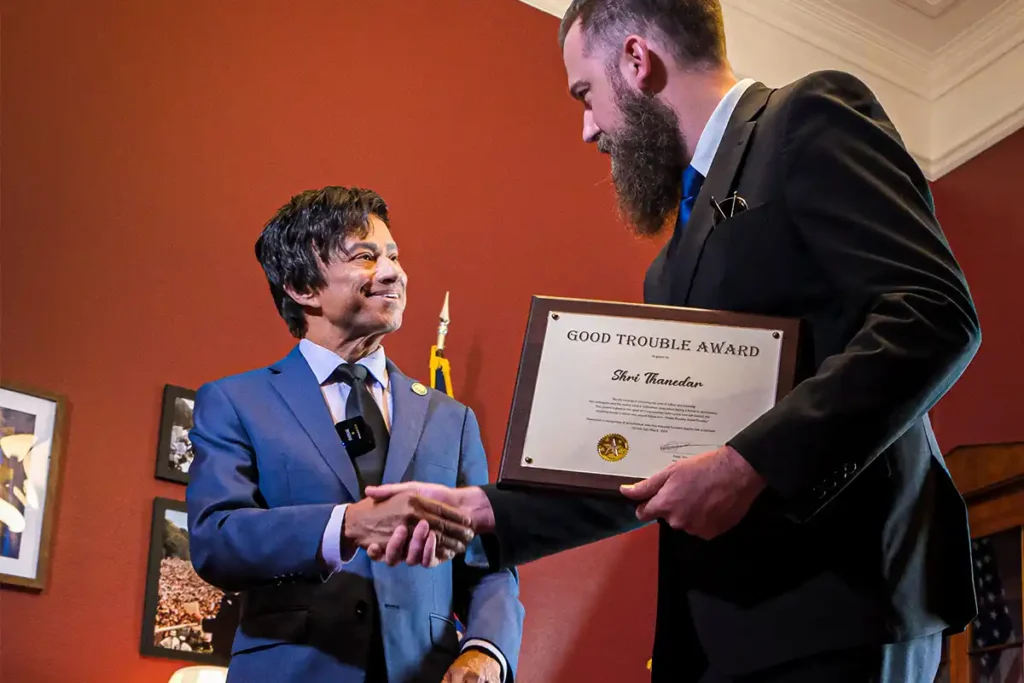 The Mayday Movement USA, a grassroots organization staging a continuous sit-in on the National Mall to call for the impeachment and removal of President Trump, met today with Rep. Shri Thanedar (D-MI-13) to present him with its inaugural “Good Trouble” award. The award “recognizes individuals who take bold, often unpopular actions in defense of the Constitution.”